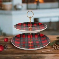 Deals 😀 10″ Red Tartan & Gold Treat Stand by Celebrate It™ 🧨