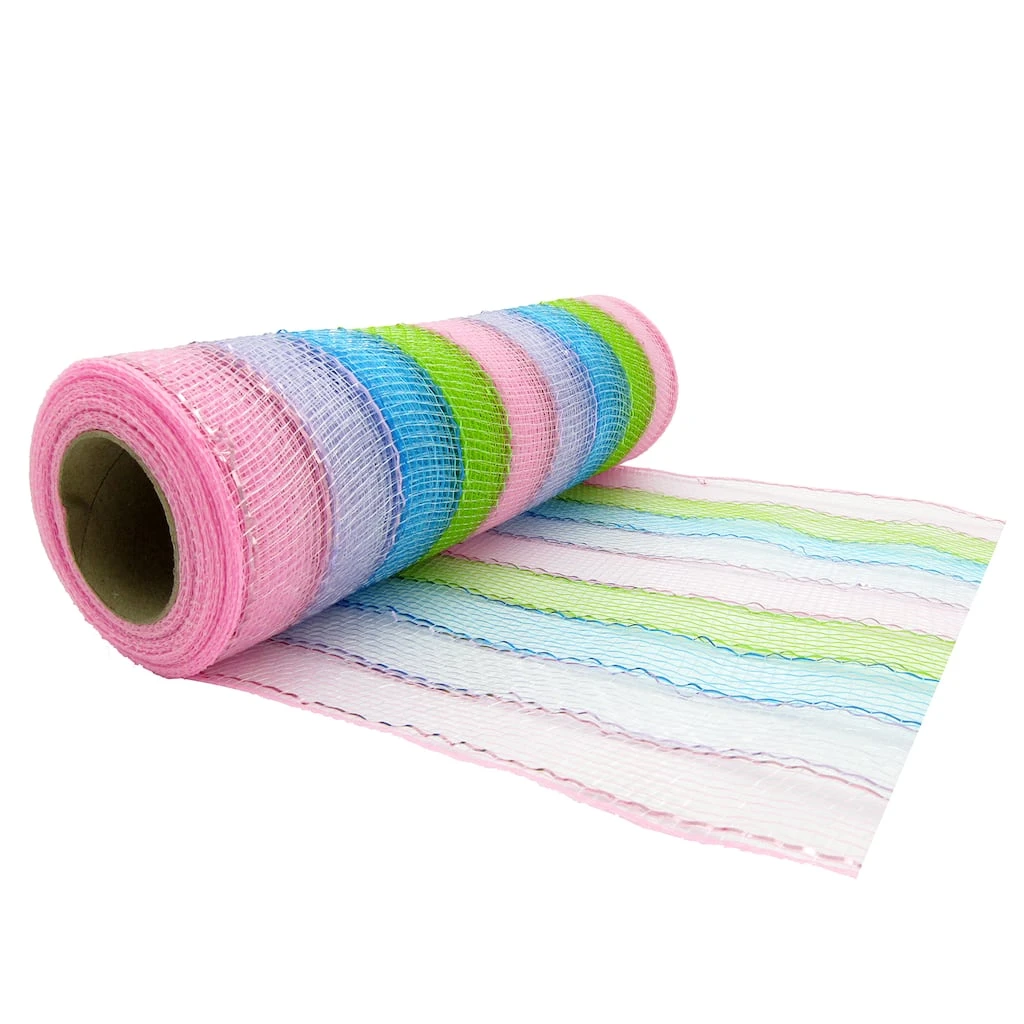 Covered in pastel shades, this striped mesh is perfect to add a pop of color and charm to your living space. You can team it with faux flowers to create a stunning wreath for your living room wall.