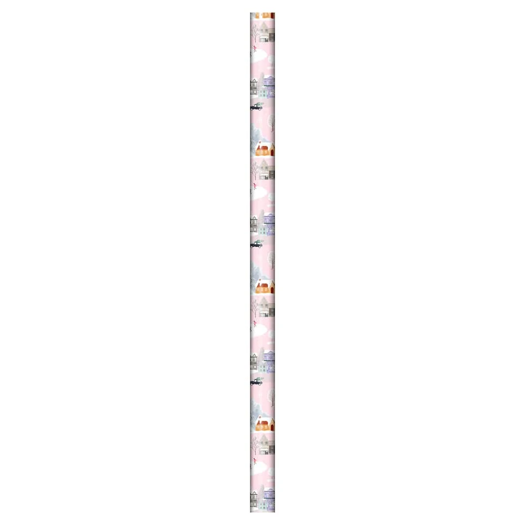 Featuring a lovely winter village scene on pink, this charming wrapping paper is a fantastic way to dress up your holiday presents with flair. Pair it with shimmery ribbons and bows and add complementary tags for gifts sure to stand out as you celebrate this Christmas season with your loved ones.