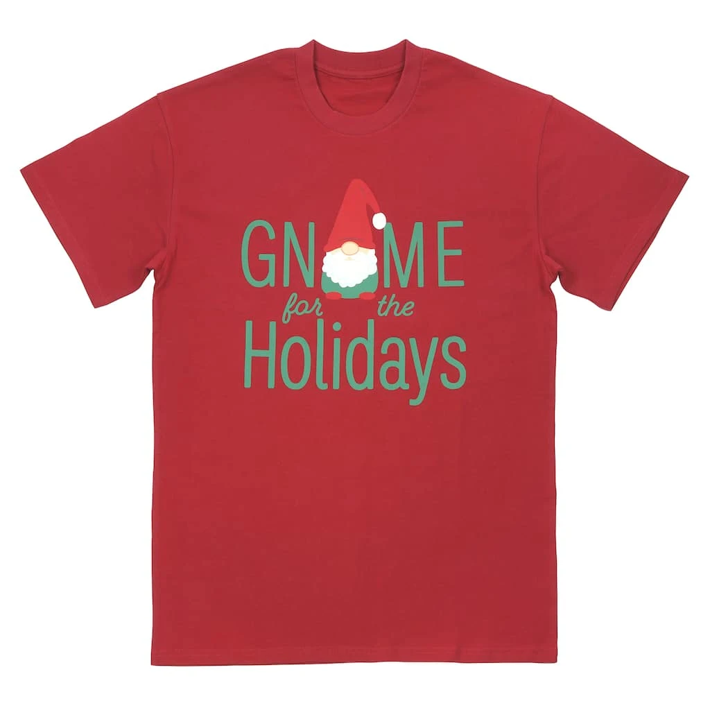 Ring in the season with humor and style by donning this playful t-shirt from Celebrate It. Featuring the phrase ‘Gnome for the Holidays,’ this fun festive tee is sure to get a good laugh at holiday parties and family get togethers this Christmas.