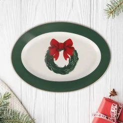 Wholesale 🌟 14″ Green & White Wreath Oval Platter by Celebrate It™ ⌛