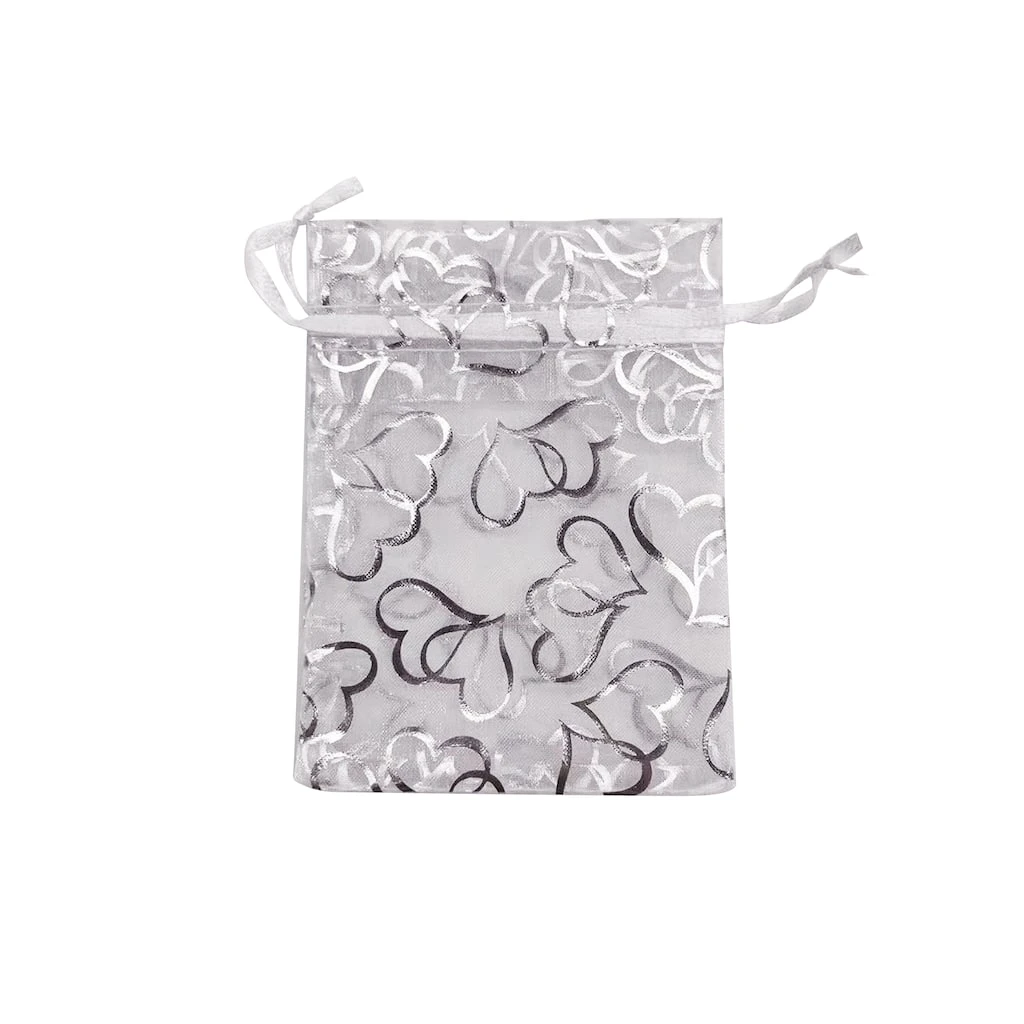 Fill these silver double heart print bags with decorative accents to create stunning party dΓ©cor and favors. Organza is a versatile and popular option that’s perfect for weddings and other special occasions.
