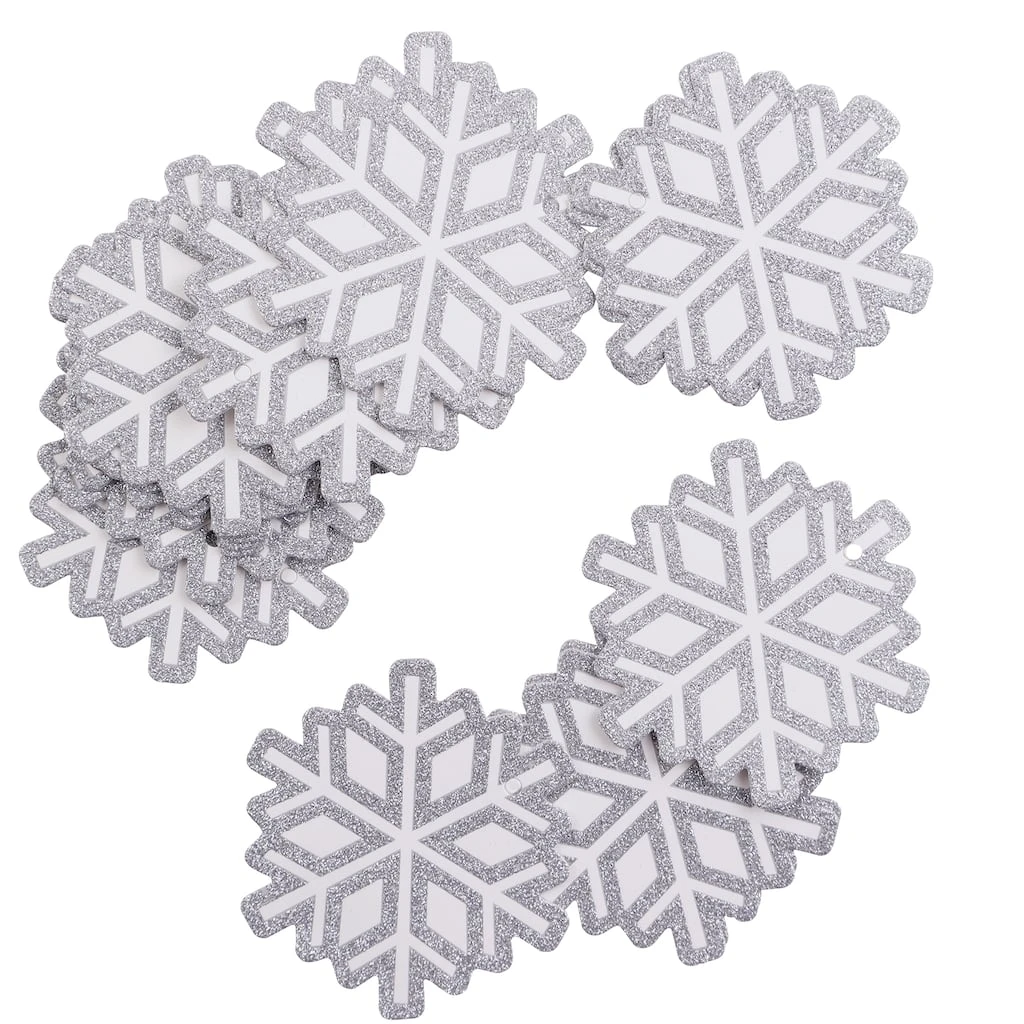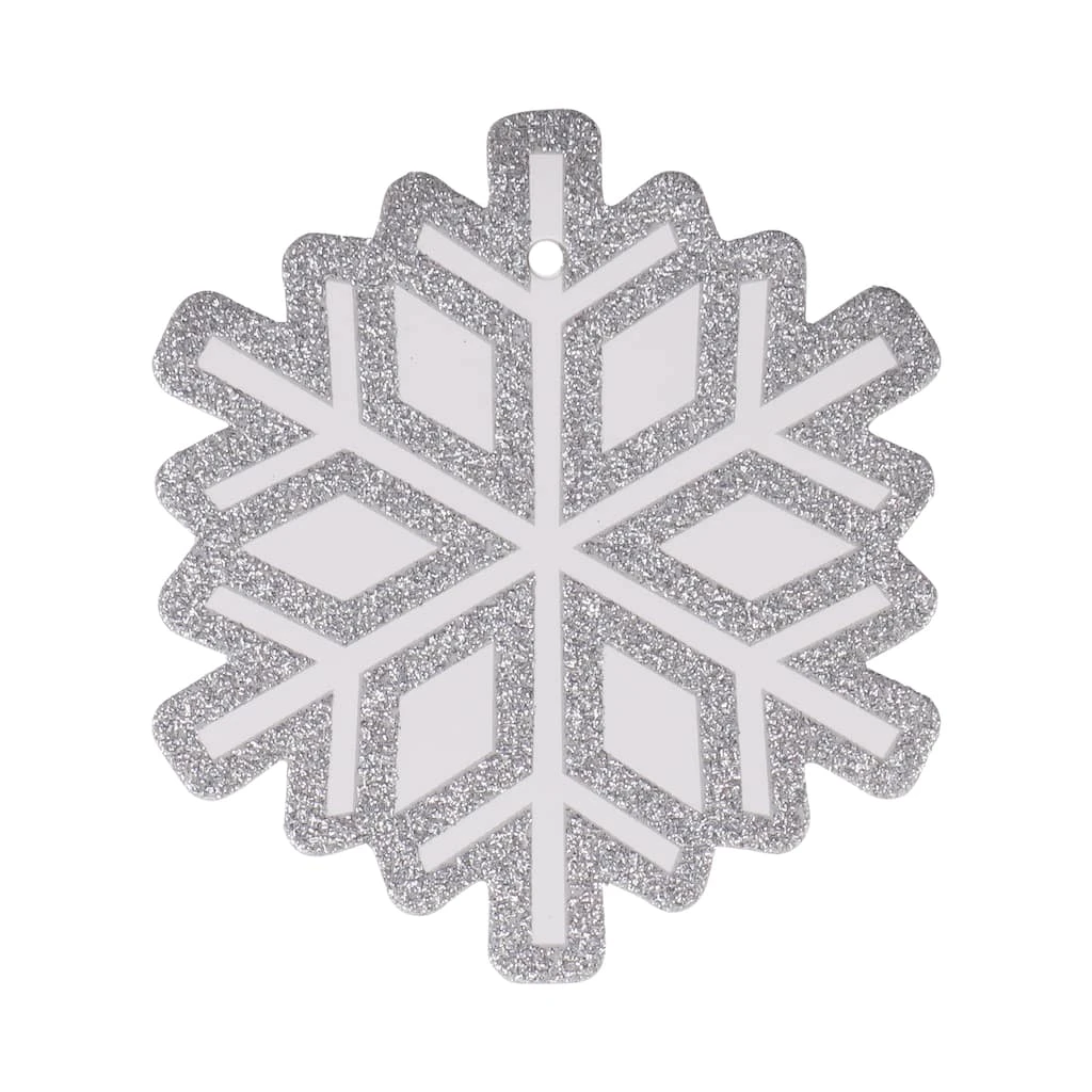 - Silver glitter and white snowflake design with white string